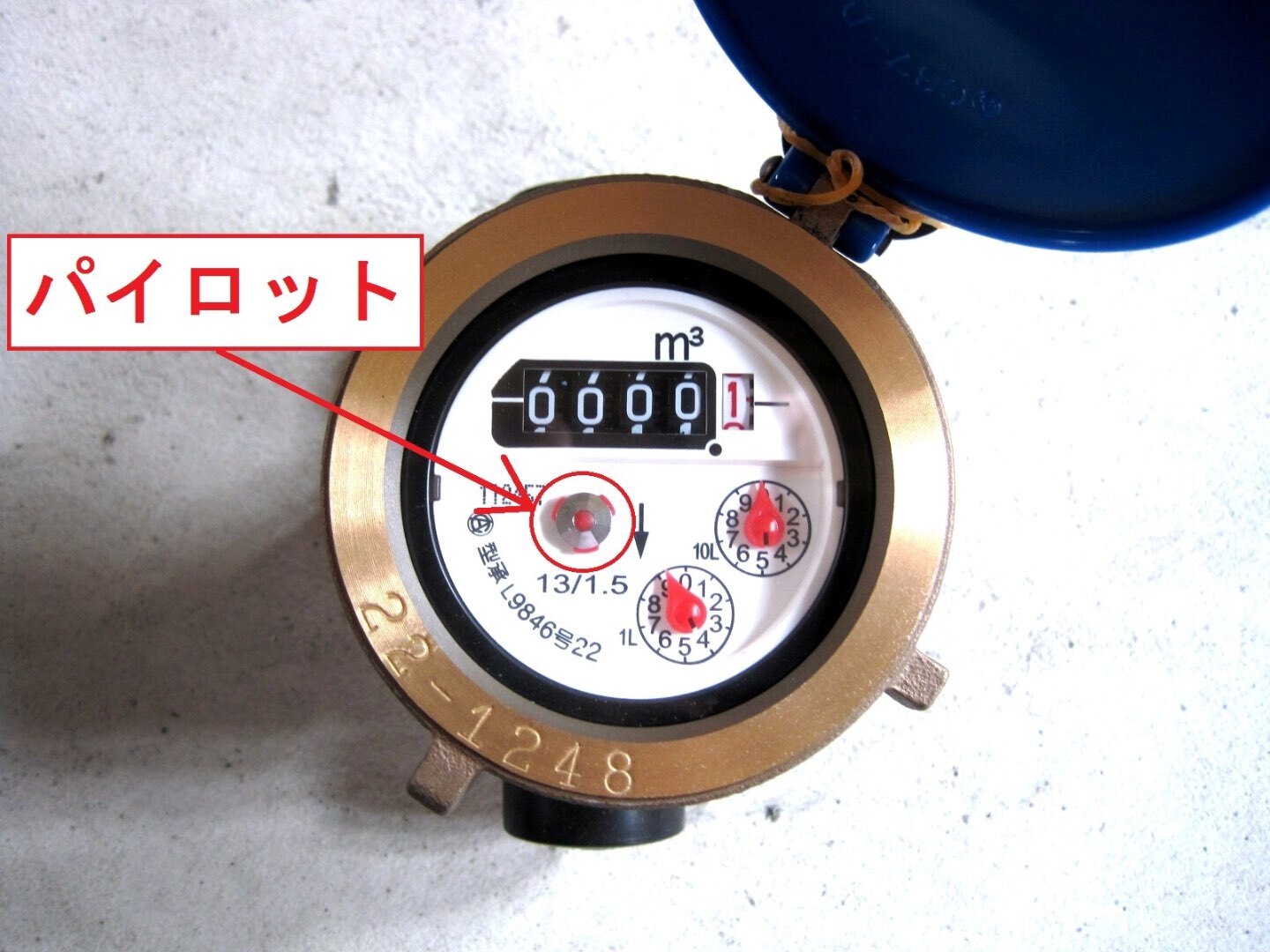 すべてチェックできましたら、水道メーターを確認してください、水道メーターのパイロットというところが少しでも回っているとどこかで漏水しているという事です。